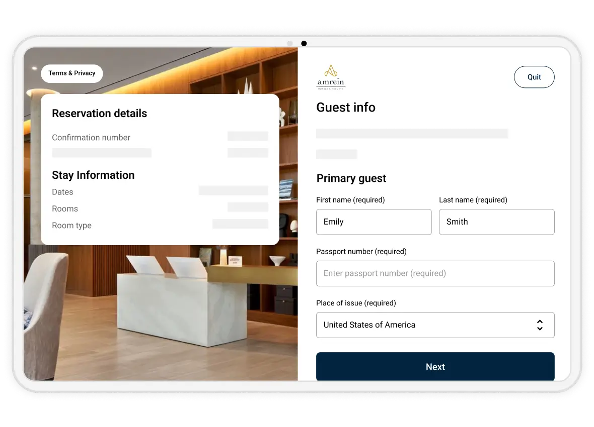 Let guests check-in on their own mobile device before ever setting foot on your  property — streamlining check-in and eliminating lines.